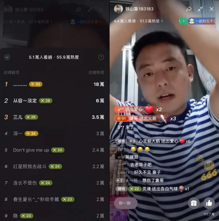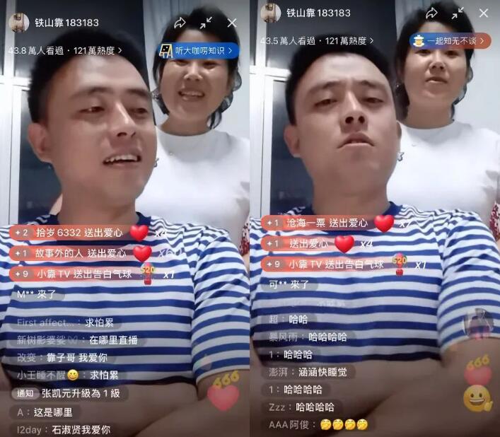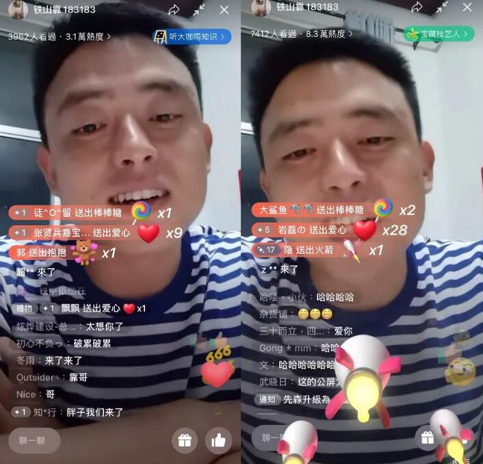 在直播过程中铁山靠还是以往的风格,依旧在直播间喊着“求怕累”感谢粉丝们刷出的礼物。